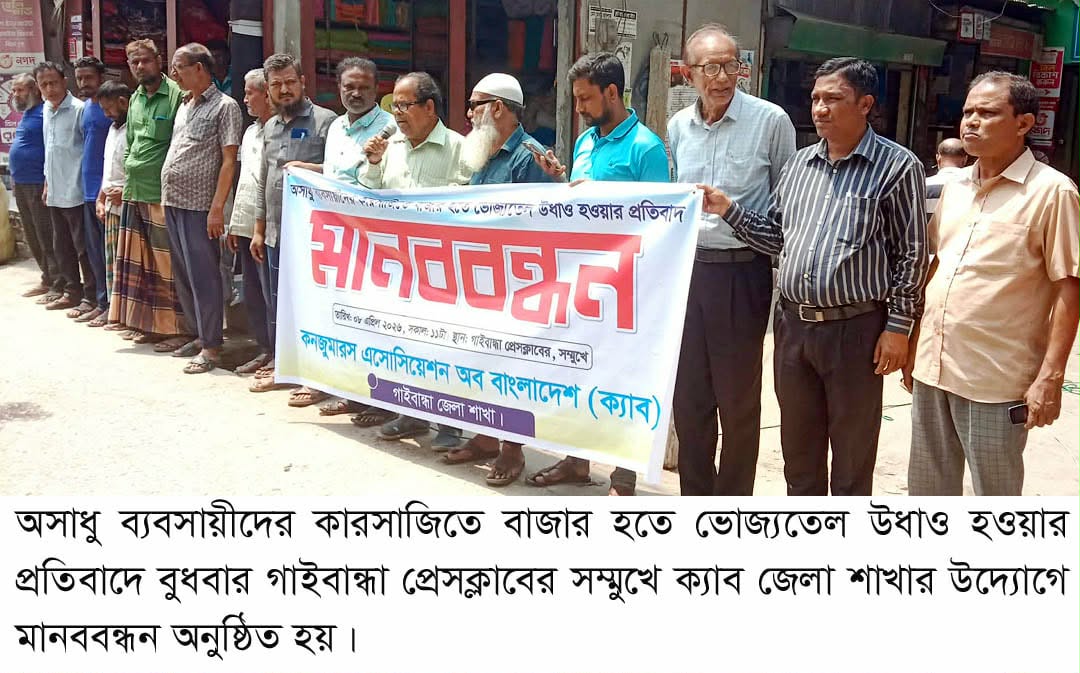 অসাধু ব্যবসায়ীদের কারসাজিতে ভোজ্যতেল উধাও' প্রতিবাদে গাইবান্ধায় মানববন্ধন