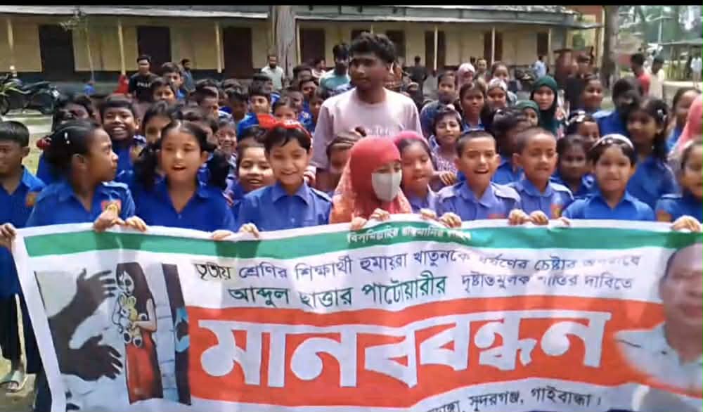 সুন্দরগঞ্জে শিশু ধর্ষণ চেষ্টা’ শাস্তির দাবিতে মানববন্ধন