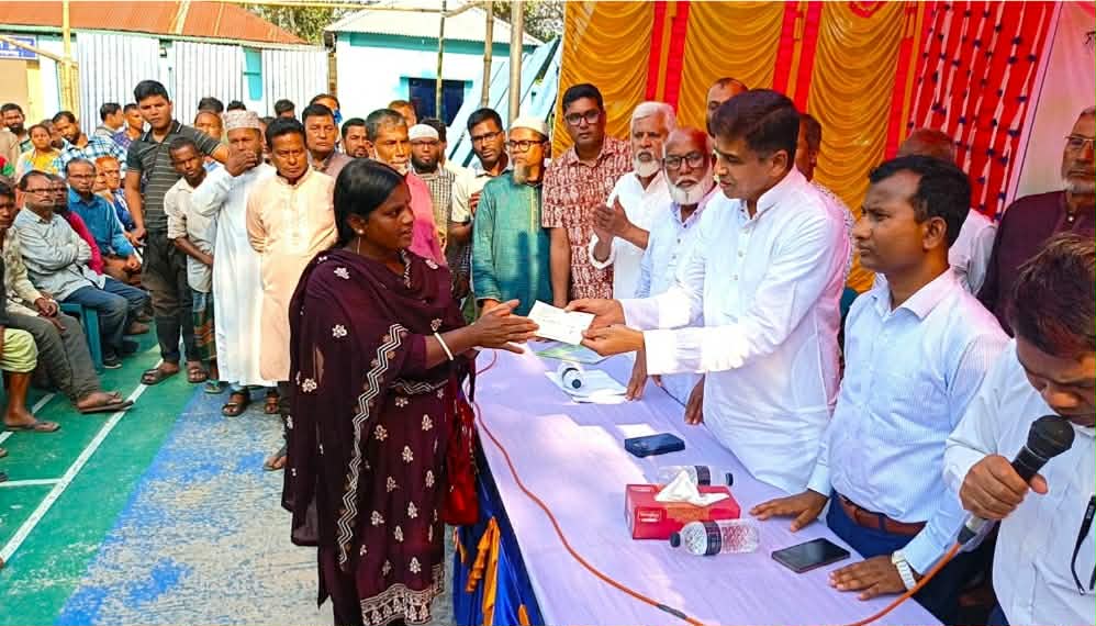 দেবীগঞ্জে ঘূর্ণিঝড় ও শিলাবৃষ্টিতে ক্ষতিগ্রস্তদের মাঝে টিন ও নগদ অর্থ বিতরণ
