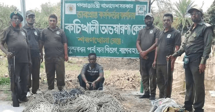 সুন্দরবনে ৪ হাজার ফুট ফাঁদসহ হরিণ শিকারিকে আটক